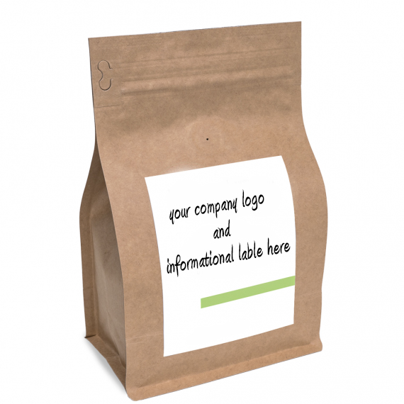 We'll pack the coffee in a bag of your choice, with a custom label. We have lots of bags and an in-house designer who can help).